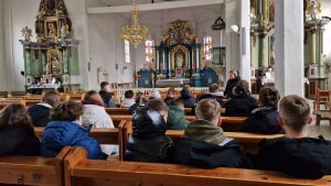Naszą wędrówkę rozpoczęliśmy od wizyty w kościele pw. Nawiedzenia Najświętszej Maryi Panny, gdzie uczniowie wspólnie z lokalną społecznością uczestniczyli we Mszy Świętej. Była to piękna okazja do zatrzymania się, refleksji i doświadczenia duchowej atmosfery tego szczególnego miejsca.