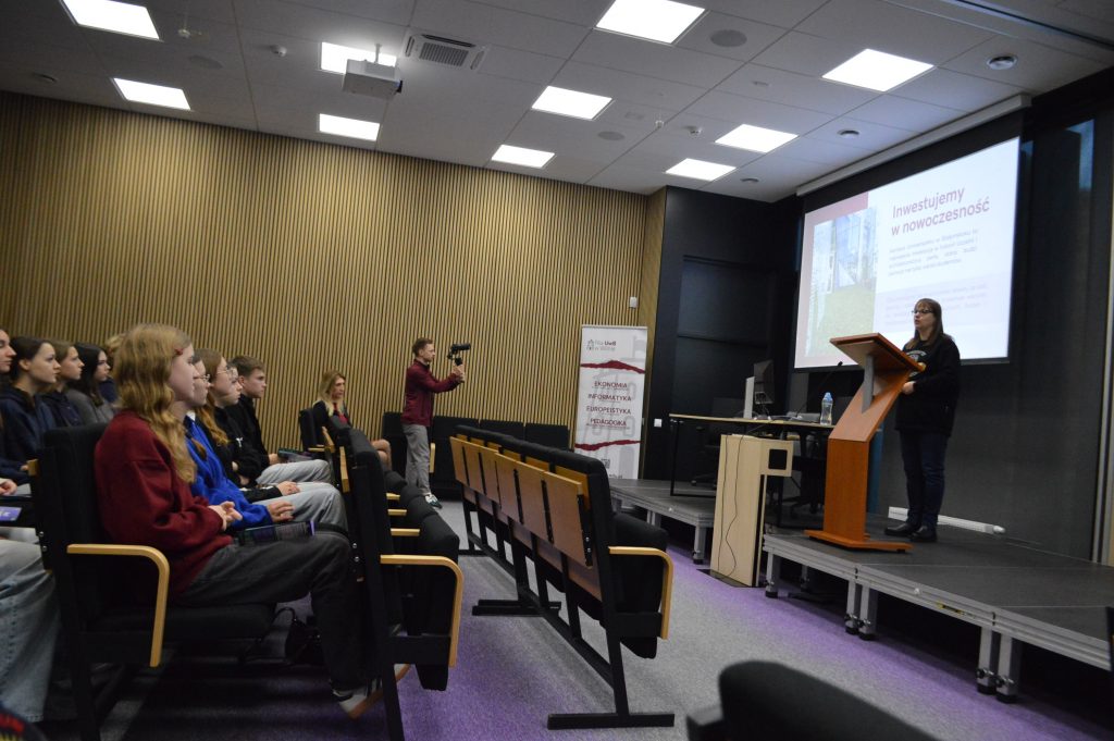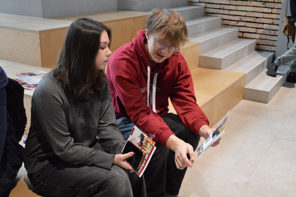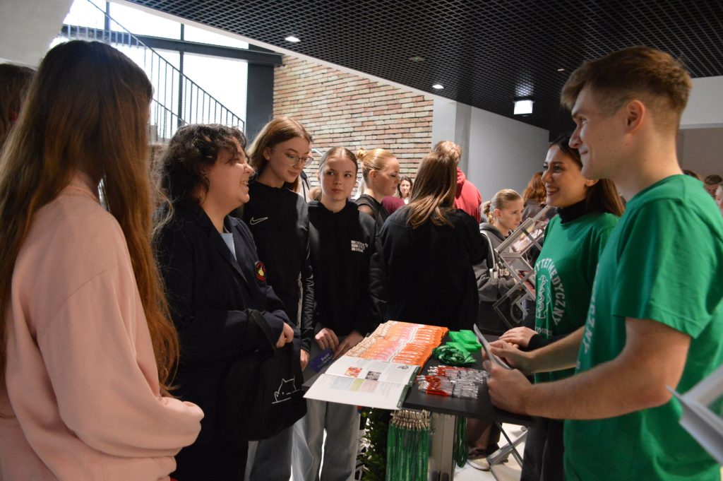 Uczniowie mieli również możliwość bezpośredniego kontaktu z przedstawicielami uczelni i instytucji partnerskich przy stoiskach promocyjnych, gdzie mogli uzyskać szczegółowe informacje o kierunkach studiów, zasadach rekrutacji i życiu akademickim.