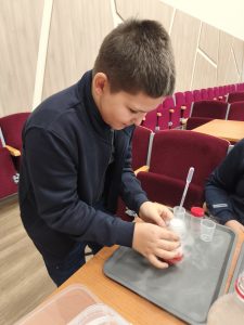 Pamokos metu vaikai pasinėrė į mokslo pasaulį ir tapo jaunaisiais tyrėjais. Jie: