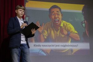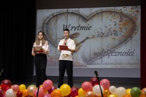 Kulminacyjnym punktem dnia był wyjątkowy koncert „W rytmie wdzięczności” 🎶, przygotowany przez uczniów. Na scenie pojawiły się wzruszające występy solowe, energetyczne tańce 💃🕺, zabawne skecze i zagadki, a finałowy flashmob porwał całą publiczność! 🎭🎤 Nie zabrakło też chwil refleksji, wspomnień i pięknych słów wdzięczności dla nauczycieli – tych, którzy na co dzień z pasją i sercem towarzyszą młodym ludziom w drodze ku wiedzy. ❤️