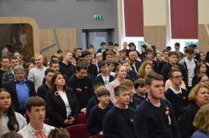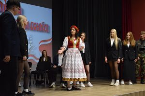 Motywem przewodnim tegorocznej uroczystości było hasło: „Naród żyje, dopóki język jego żyje”. Uczniowie w poruszający sposób przypomnieli, że wolność i niepodległość to nie tylko symbole narodowe i daty historyczne, ale również nasz język ojczysty – mowa, która przez wieki jednoczyła Polaków. Na scenie pojawiła się alegoryczna postać „Mowy Ojczystej”, która przypomniała młodym ludziom, jak ważne jest poszanowanie języka, tradycji i historii.