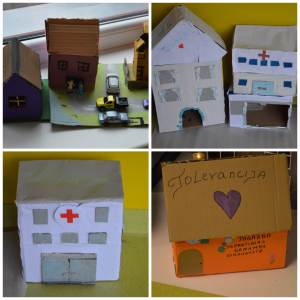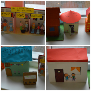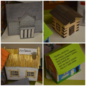 Największe wrażenie robiły przygotowane przez uczniów domy wykonane z różnorodnych materiałów – papieru, kartonu, tkanin, elementów recyklingowych czy naturalnych ozdób. Każdy z nich był niepowtarzalny i symbolizował inne spojrzenie na tolerancję: współistnienie, akceptację, dialog i różnorodność. Kreatywność uczniów była widoczna w każdym szczególe, a pomysłowość oraz chęć współpracy pokazały, że wartości takie jak empatia i zrozumienie są im bardzo bliskie.