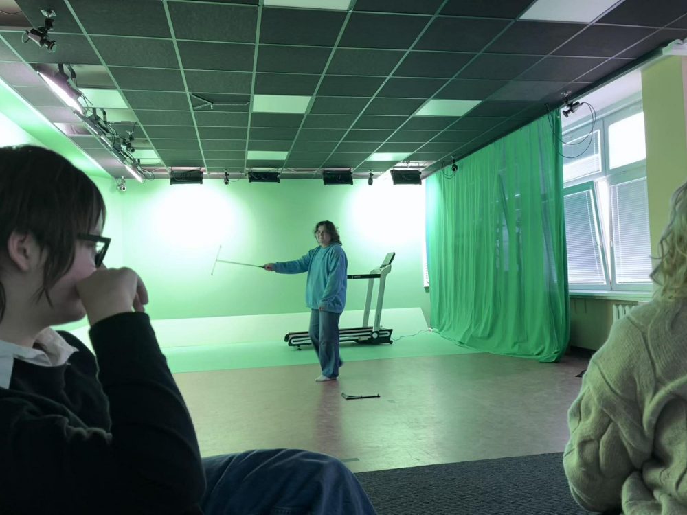 Patricija Kolobanova, Evelina Rympo ir Dominika Mulmo (GIIa) lankėsi Vilnius Tech Multimedijos ir kompiuterinio dizaino laboratorijoje, kur stebėjo Motion Capture specialisto darbą.