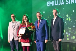 Šiltai sveikiname ir Emiliją Sinkevič, „Metų abiturientę“, kurios atkaklumas, žinios ir puikūs egzaminų rezultatai liudija, kad mūsų gimnazijoje užauga nepaprastai pajėgūs, kryptingi ir savo ateitį ryžtingai kuriantys jauni žmonės.