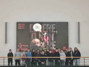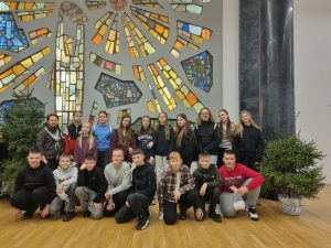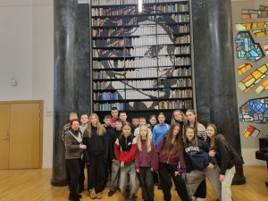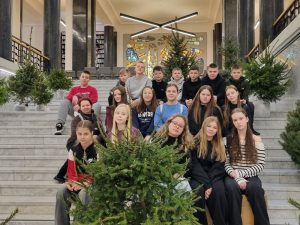 Gruodžio 19 d. 6c klasės mokiniai lankėsi Lietuvos nacionalinėje Martyno Mažvydo bibliotekoje. Mokinius pradžiugino šventinė, artėjančių Šventųjų Kalėdų nuotaika bei galimybė aplankyti šiuolaikinio lietuvių menininko parodą „Essere o non essere?“ („Būti ar nebūti?“). Tapytojas Darius Bastys savo kūriniuose nagrinėja žmogiškumo paieškas, sustingimo ir kitas svarbias temas, o jo mene vyrauja fantasmagoriška, sapną primenanti atmosfera.