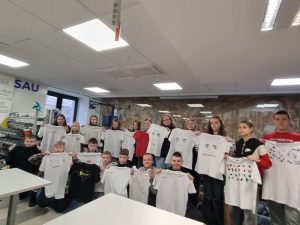 Mokiniams buvo paaiškinta, kaip, pasitelkus kūrybiškumą, galima atnaujinti marškinėlius ir sukurti išskirtinį drabužį. Šeštokai su dideliu entuziazmu dalyvavo edukacijoje, o rezultatai buvo išties puikūs. Visi mokiniai namo parsivežė ne tik edukacijos atsiminimus, bet ir savo sukurtus marškinėlius.