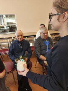 Po części artystycznej nastąpił moment wręczania upominków oraz własnoręcznie wykonanych prezentów. Każdy z nich był symbolem pamięci, życzliwości i wdzięczności wobec osób starszych.