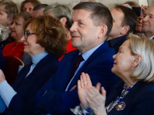 Wizyta uczniów gimnazjum w Domu Opieki Społecznej we wsi Czużakampie z okazji Dnia Babci i Dziadka
