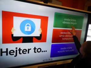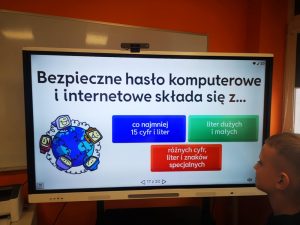 Vėliau mokiniai atliko interaktyvias užduotis ir sprendė testus, skirtus žinioms apie saugų internetą įtvirtinti. Džiugu, kad ketvirtokai sėkmingai susidorojo su užduotimis ir dar kartą įtvirtino svarbiausias taisykles: saugoti asmeninius duomenis, kurti stiprius slaptažodžius, nebendrauti su nepažįstamais asmenimis, neatverti įtartinų laiškų ar nuorodų bei apie nemalonias situacijas informuoti suaugusiuosius.