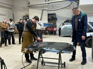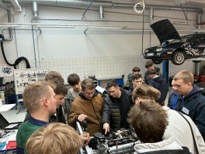 Vos tik atvykus į pirmąją stotelę, mokinius pasitiko gyvybinga aplinka: dirbtuvėse skambėjo įrankiai, buvo remontuojami automobiliai, o mokiniai galėjo iš arti stebėti tikrą darbą. Jie susipažino su transporto priemonių bei automobilio kėbulo remontininko specialybėmis, sužinojo apie praktikos galimybes ir net patys galėjo išbandyti kai kurias veiklas. Daugeliui tai buvo netikėtas atradimas – mokytis galima ne tik iš vadovėlių!