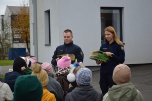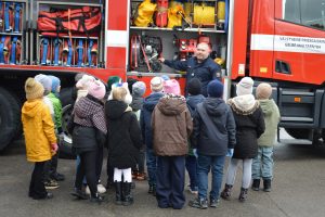 Największą atrakcją było wejście do wozu strażackiego i przymierzanie hełmu! Strażacy opowiedzieli też, jak dbać o bezpieczeństwo i jak wezwać pomoc w razie niebezpieczeństwa 112.