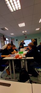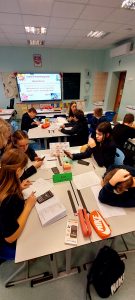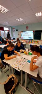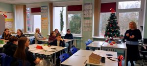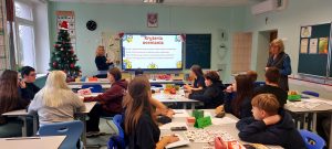 W klasie 8b odbyła się lekcja integracyjna 10 grudnia, którą przeprowadzili nauczyciel metodyk matematyki Olga Narkun oraz starszy nauczyciel ekonomii Jelena Łatwienie. Podczas zajęć uczniowie łączyli wiedzę matematyczną z praktyczną ekonomią. Tematem lekcji były obliczenia procentowe w sytuacjach życiowych, a celem — pokazanie, że procenty to narzędzie wykorzystywane na co dzień: w sklepie, banku czy w domowym budżecie.